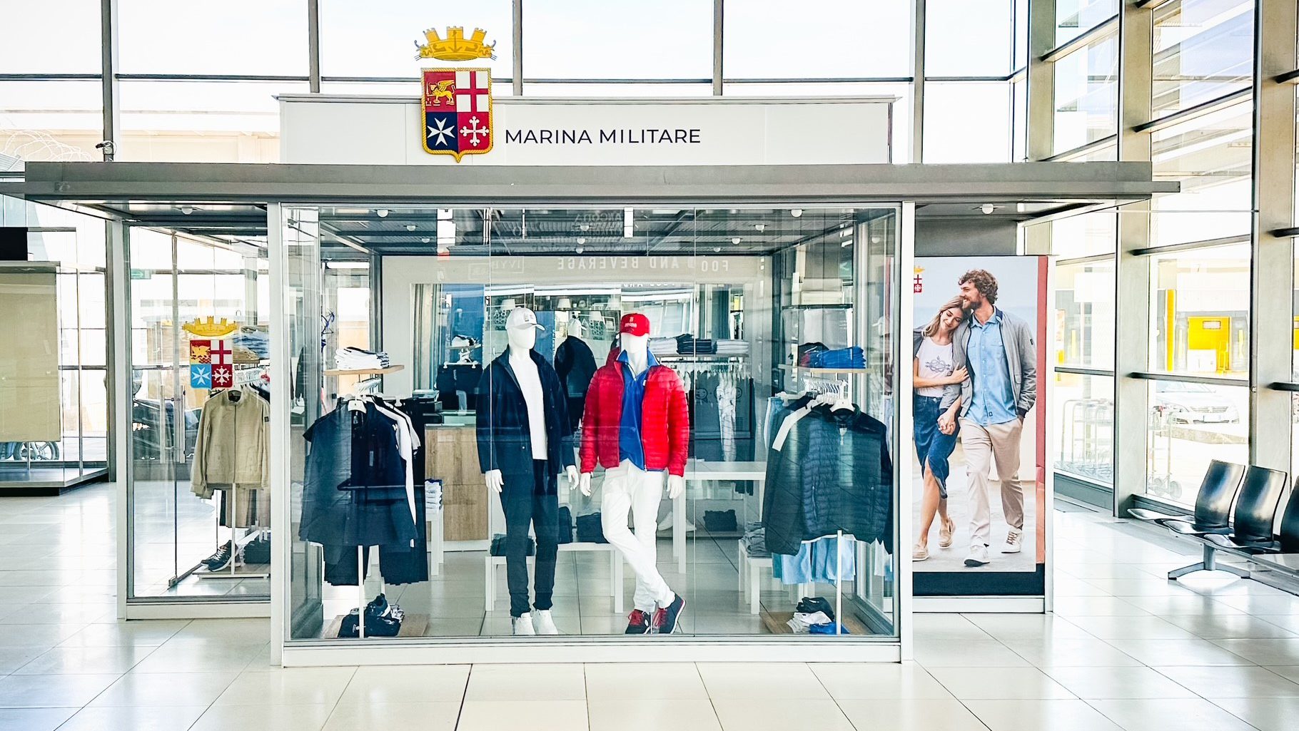 Marina Militare shop is located at the Depature Terminal in front of check-in desks. MARINA MILITARE SPORTSWEAR's collections, for Men and Women, are inspired by the world of the Italian navy, the Marina Militare. This ethos of this world has a strong emotional appeal, full of passion, self-sacrifice, history and distinction. Its traditions are as relevant today as ever. Our style and design draw on the historical values upheld by the Marina Militare. These are concrete values, well known and strongly embedded in the public imagination. They represent a way of feeling, living, dreaming, of accepting challenges and breaking through boundaries. Man is the central figure in this vision, a man of integrity, truth and humanity. The Italian navy’s emblem, just like the national green, white and red flag, is the symbol of Italy’s history, her people and their roots, and a herald of peace. It bears the coats of arms of Italy’s four maritime republics: Venice, Genoa, Pisa and Amalfi.